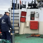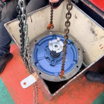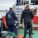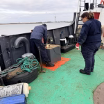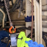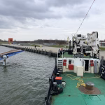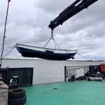 Zaterdag de 28-ste was er geen korpsdag. Maar het was voor kader en vrijwilligers zo ongeveer de drukste dag van het jaar. De grote kraan zou van het schip worden verwijderd. Zou, want door wat tegenslag kon de kraan met dieplader niet op tijd aanwezig zijn. Nu wordt dus maandag weer een drukke dag voor kaderleden en vrijwilligers. Dat neemt niet weg dat er heel veel wel is gebeurd zaterdag. De losse onderdelen zoals een amechtig zware hydrauliekpomp zijn uit het ruim getakeld en afgevoerd. Natuurlijk is ook de vlet direct maar even op het dek gezet.