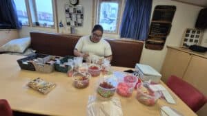 Een regenachtige korpsdag zaterdag. Maar een leuke! Ook onze kwartiermeester Jaydalynn was weer aanwezig na haar eerste reis aan boord van het binnenvaartschip Amice waar zij nu als matroos werkt. Het betekende ook dat bevoorraad van de toko kon worden aangevuld zoals je ziet.